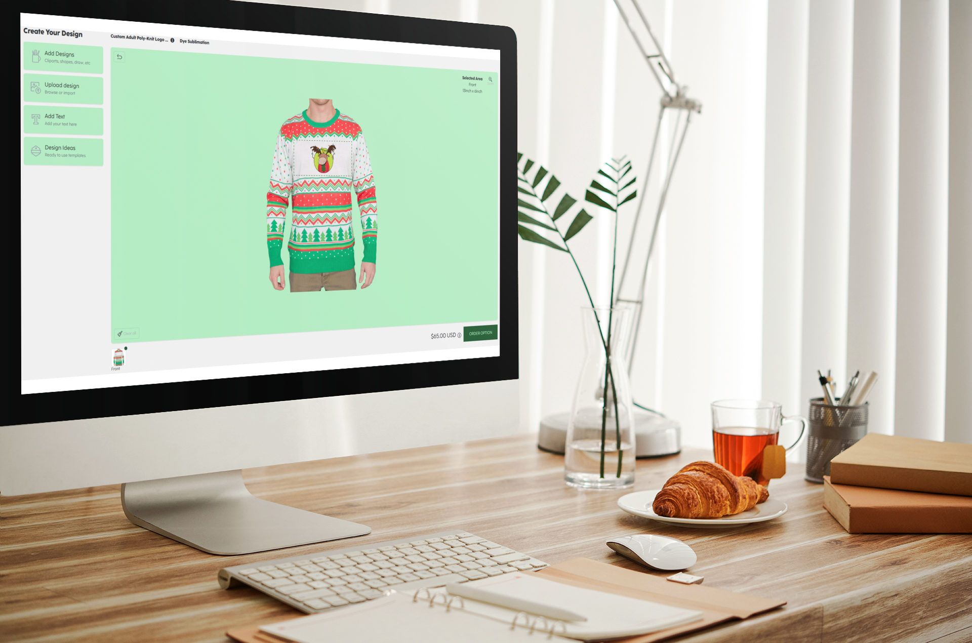 Effortlessly drag-and-drop your logo or design using the online design tool. Creating a custom Ugly Christmas Sweater has never been easier!